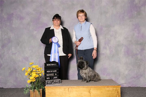 Tess took a Group 1st at the ripe old age of 7 months and followed it up with another Group 1st at the Atlantic Puppy Awards. Tess is extremely intelligent and easy to train. She obtained her Rally Novice title in her first three tries and loves Agility. A High in Class title was also won on her way to obtaining her Companion Dog title. Intelligence and not impeccable grooming is what got her this title – LOL.
